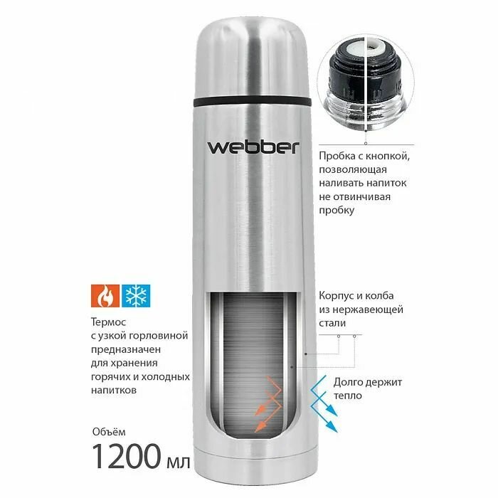 Купить Термос WEВBER SS-1200P 1200мл (24) с доставкой по всей России. Термос WEВBER SS-1200P 1200мл (24): сравнение цен, характеристики, фото, актуальное наличие и цены.