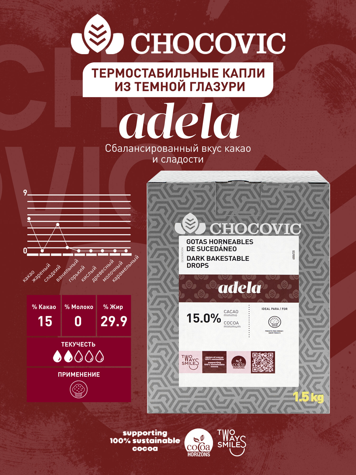 Купить Термостабильные капли из темной глазури Adela Chocovic (Чоковик) 1,5 кг с доставкой по всей России. Термостабильные капли из темной глазури Adela Chocovic (Чоковик) 1,5 кг: сравнение цен, характеристики, фото, актуальное наличие и цены.