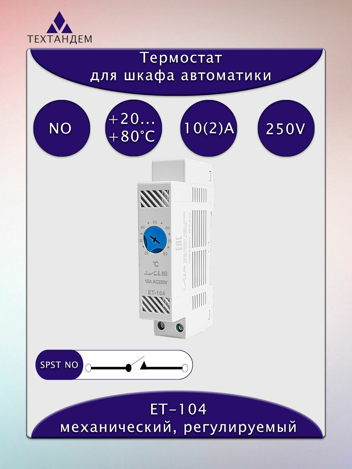 Термостат для шкафа автоматики +20.+80C, NO, 10(2)A 250VAC, ET-104, механический, регулируемый: сравнение цен, характеристики, фото, актуальное наличие и цены.