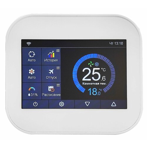 Комнатный термостат MC6-4FI2 может использоваться в системах нагрева, охлаждения или вентиляции. Сенсорное управление с дисплея термостата, либо дистанционное управление через WiFi. Предназначен для управления 2х-трубными или 4х-трубными фанкойлами или внутрипольными водяными конвекторами. Управление скоростью вращения вентилятором управляющим напряжением 0.10В и клапаном открывающий/перекрывающий поток горячей воды в теплообменник фанкойла/конвектора. Возможно использование термостата без клапанов.