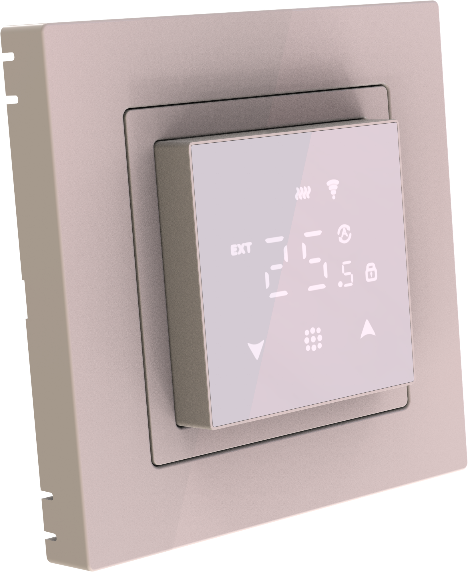 Купить Термостат с датчиком пола и воздуха непрограммируемый, 16A, размер накладки 45х45мм, цвет стекло кашемир с доставкой по всей России.