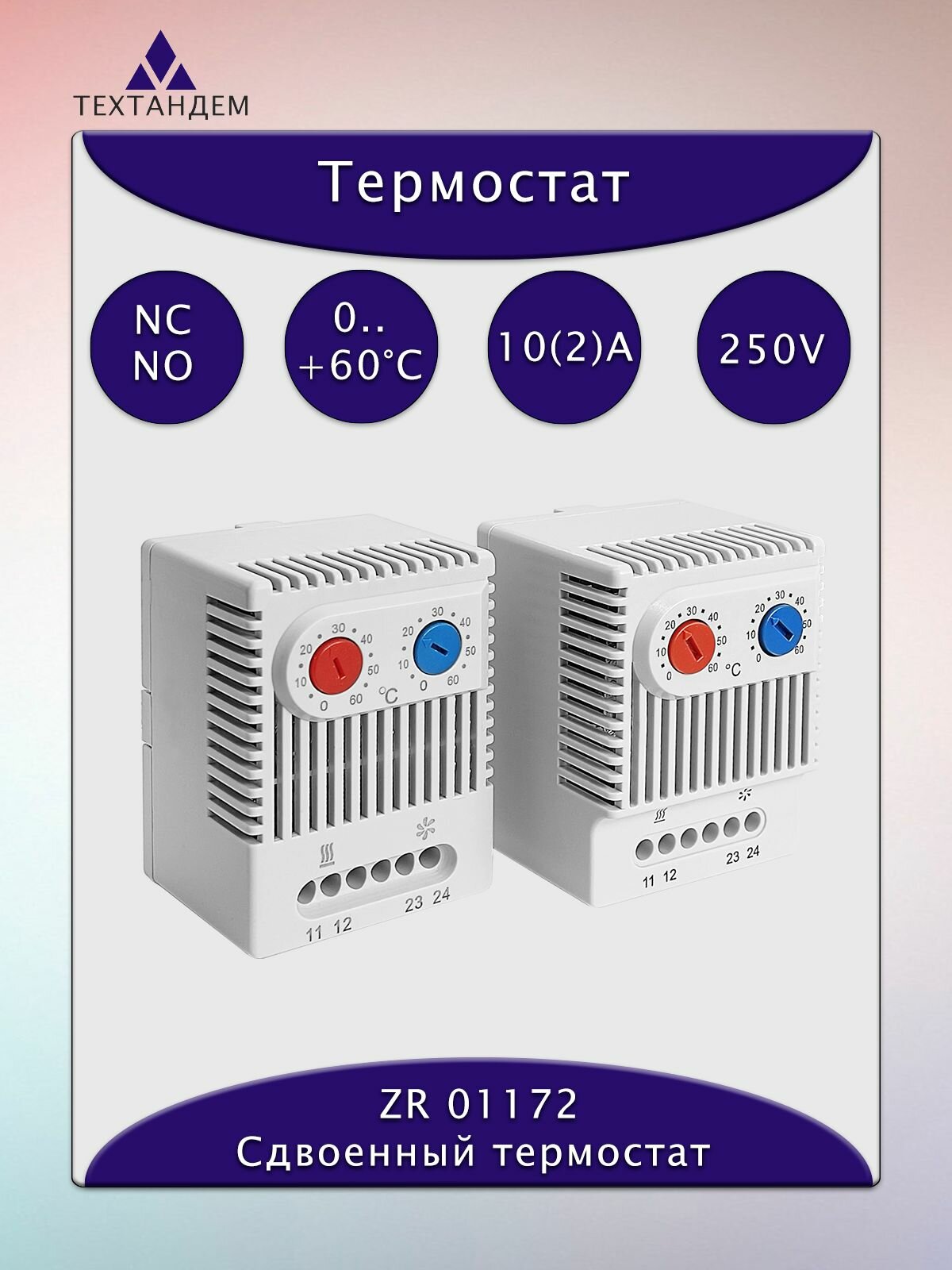 Термостат сдвоенный, 0.+60C NC/0.+60C NO, 10(2)A 250VAC, ZR 01172, механический, регулируемый: сравнение цен, характеристики, фото, актуальное наличие и цены.