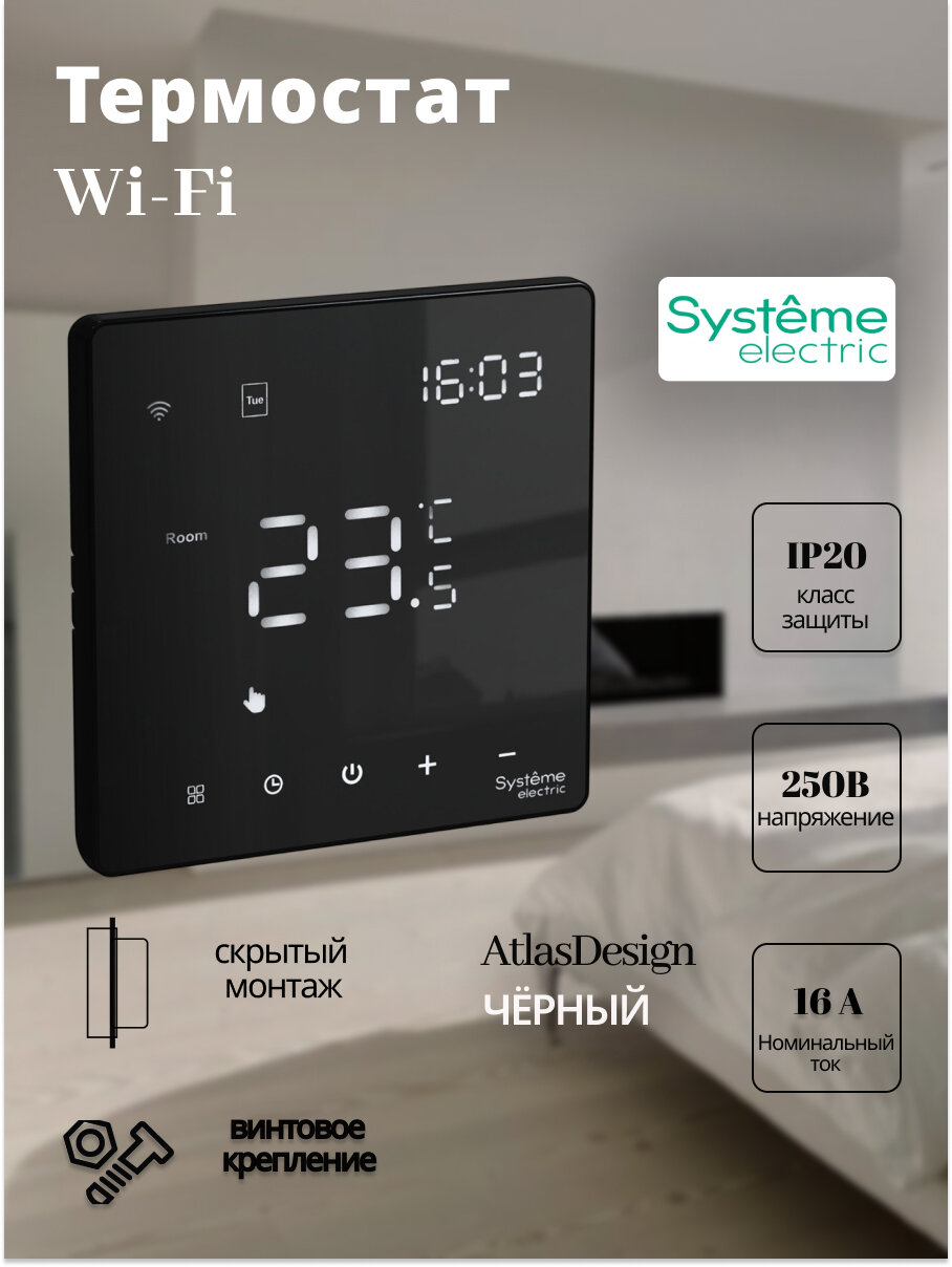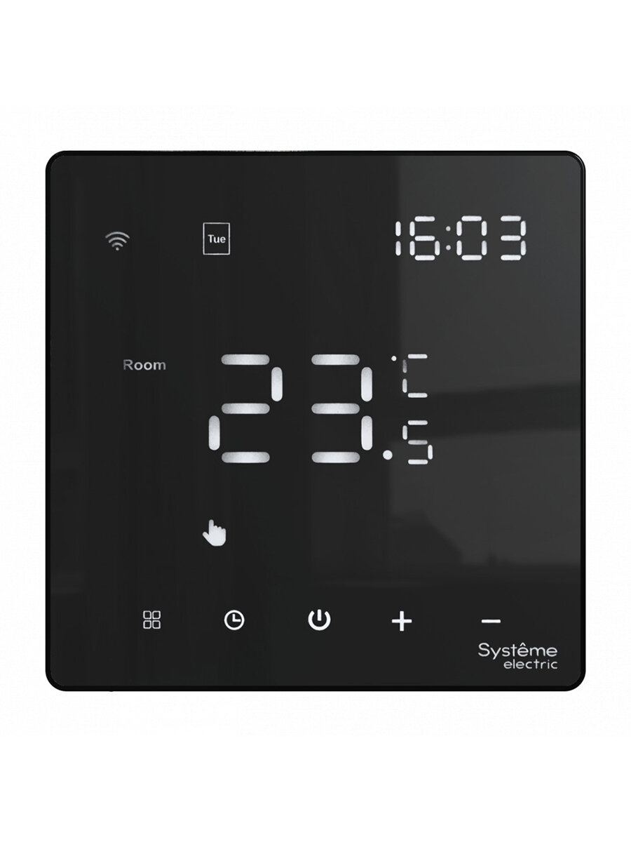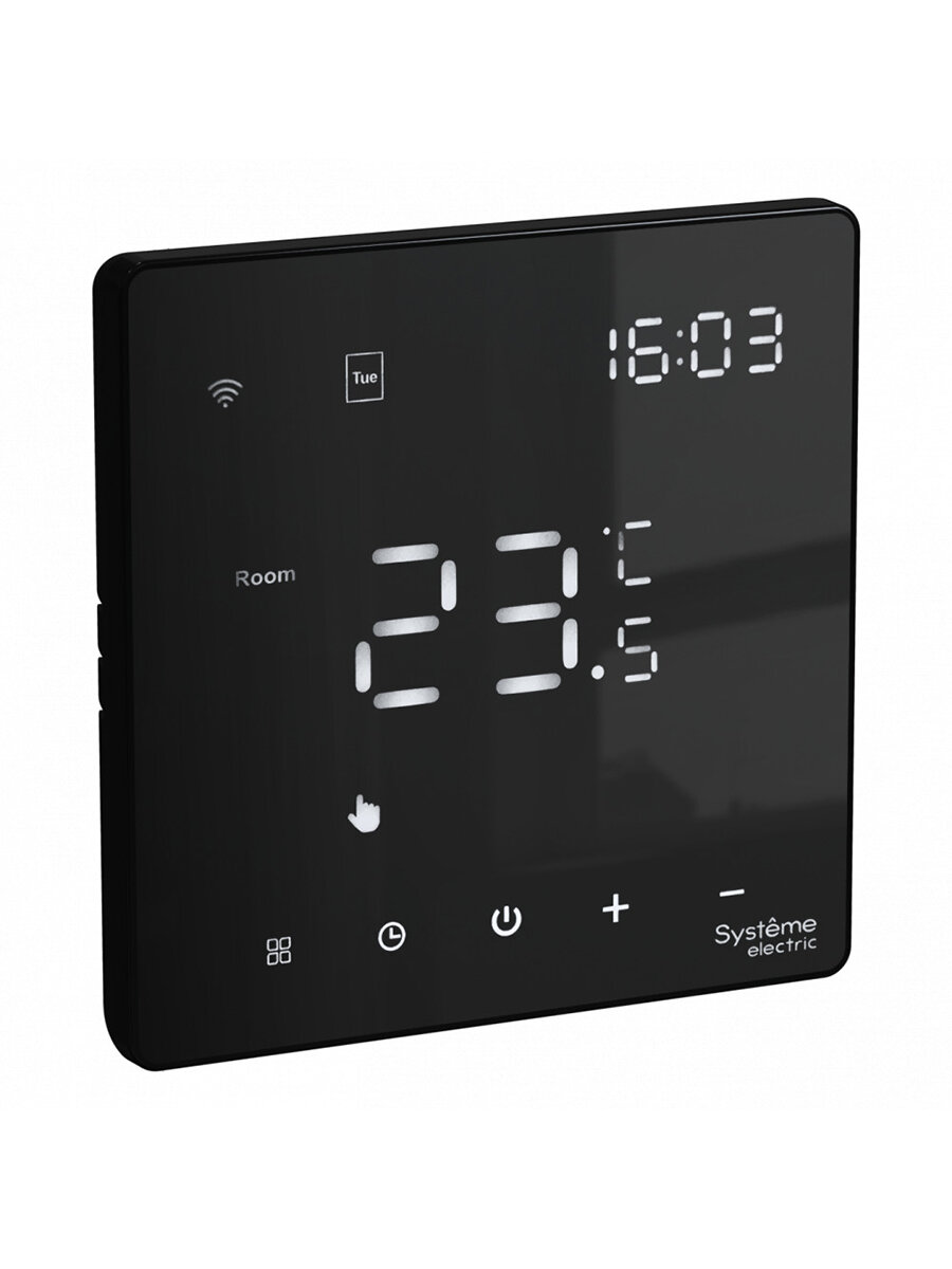 Термостат Systeme Electric ArtGallery Wi-Fi, моноблочный, электронный для теплого пола с датчиком, 16A, черный: сравнение цен, характеристики, фото, актуальное наличие и цены.