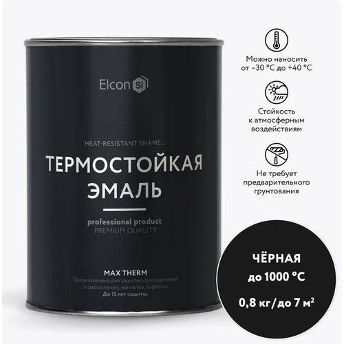 Жаропрочная эмаль Elcon Max Therm предназначена для антикоррозионной защиты металлоконструкций, оборудования, каминов, печей, мангалов, дымовых труб, выхлопных систем автомобилей, суппортов, деталей двигателей, емкостного оборудования, подвергающихся в процессе эксплуатации воздействию температур от минус 60 до плюс 1200 градусов, а также для окраски минеральных поверхностей, длительно эксплуатируемых в условиях умеренного климата. Термостойкость покрытия зависит от цвета и может составлять от плюс 400 до плюс 1200 градусов. Эмаль не требует предварительного грунтования, обладает стойкостью к атмосферным воздействиям и агрессивным средам. Возможно нанесение от минус 30 до плюс 40 градусов. Расход на 1 слой составляет от 100 до 110 г на м2. Указания к применению 1. Очистить поверхность от загрязнений, обезжирить растворителем Elcon R или ксилолом (недопустимо использовать уайт спирит, сольвент, бензин). 2. Перед применением тщательно перемешать, при необходимости разбавить растворителем Elcon R до 10 процентов от общей массы. Допускается нанесение без предварительного грунтования. Запрещается окрашивать горячие поверхности или детали. Обязательно охладите их до температуры окружающей среды. 3. Эмаль наносится на сухую поверхность в 1,2 или 3 слоя с промежуточной сушкой 30 минут при температуре плюс 20 градусов. Время окончательной сушки при температуре плюс 20 градусов составляет 24 часа. Срок окончательной полимеризации покрытия при температуре плюс 20 градусов составляет 72 часа. Для обеспечения требуемых свойств покрытия необходимо провести термозакалку, выдержать при температуре окружающего воздуха в течение не менее 30 минут, затем нагреть до температуры больше плюс 250 градусов со скоростью 3,5 градуса в минуту и поддерживать эту температуру не менее 3 часов. При достижении температуры плюс 250 градусов покрытие начнет слегка дымиться, что является нормальным и свидетельствует о том, что идет процесс термозакалки.
