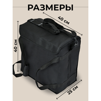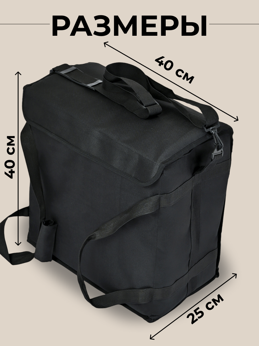 Термосумка имеет размеры 40x40x25 см, что позволяет вместить в нее достаточное количество продуктов.