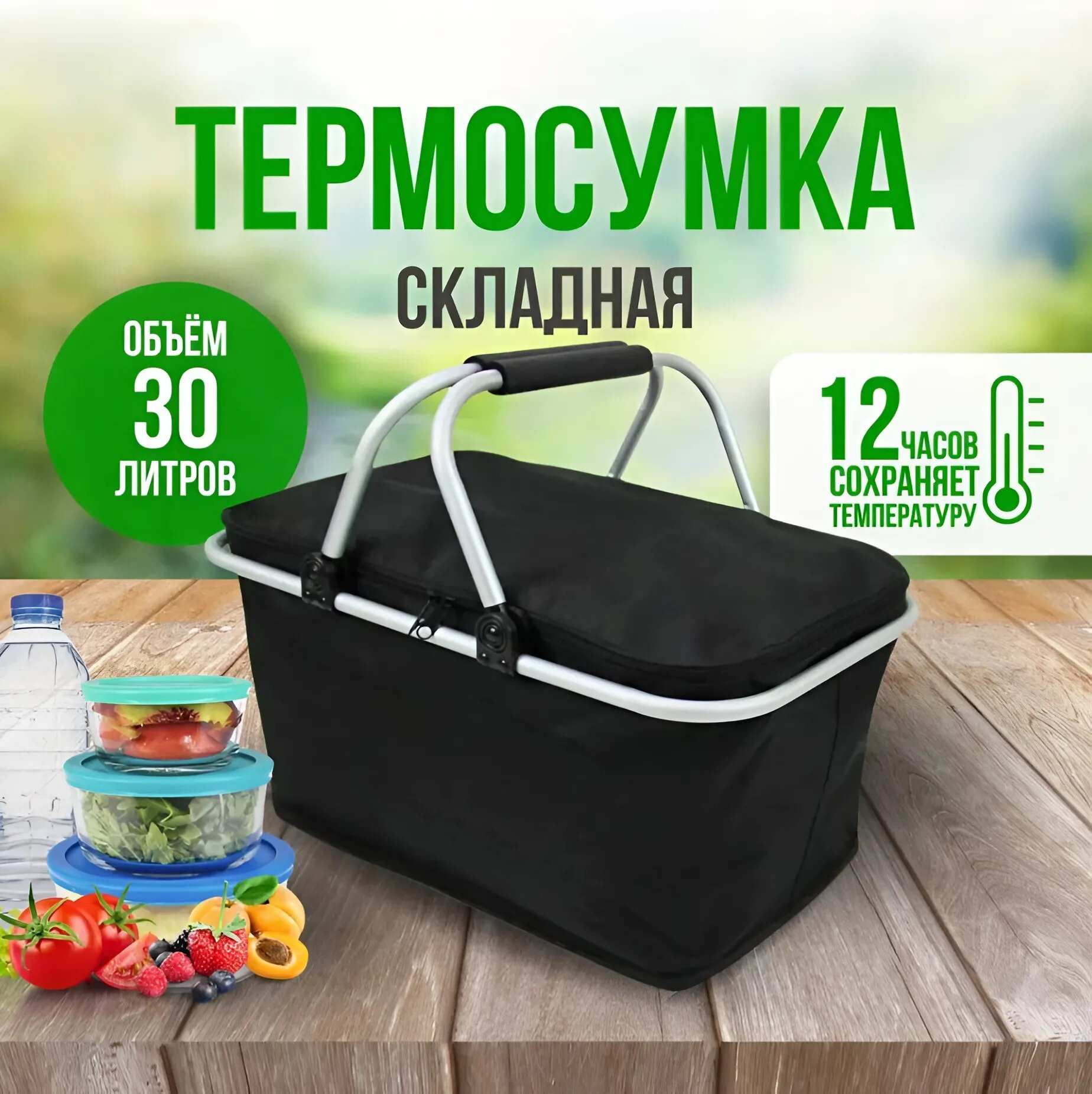 Купить Термосумка холодильник складная для активного отдыха 30 литров, цвет черный с доставкой по всей России.
