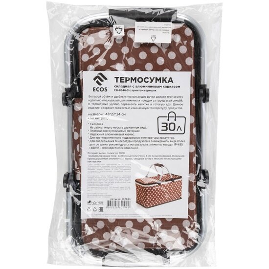 Термосумка складная Ecos с алюминиевым каркасом CB-7046-3 с принтом горошек: сравнение цен, характеристики, фото, актуальное наличие и цены.