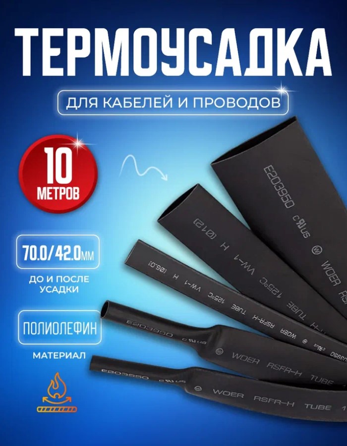 Термоусадочная трубка 70.0/42 мм 10 метров: сравнение цен, характеристики, фото, актуальное наличие и цены.