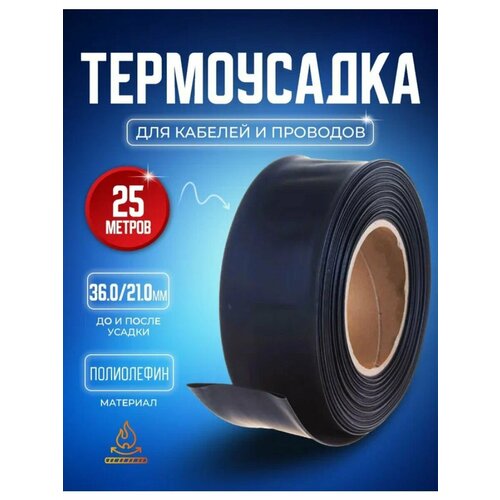 Термоусадочная трубка черная 36.0/21.0 мм 25 метров рулон: сравнение цен, характеристики, фото, актуальное наличие и цены.