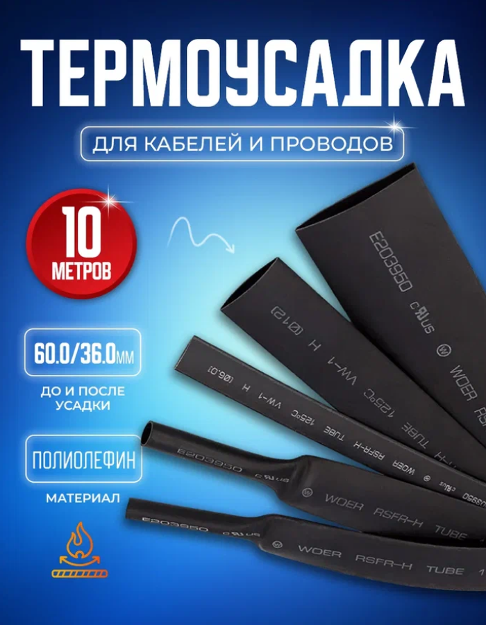 Термоусадочная трубка черная 60.0/36.0 мм 10 метров: сравнение цен, характеристики, фото, актуальное наличие и цены.