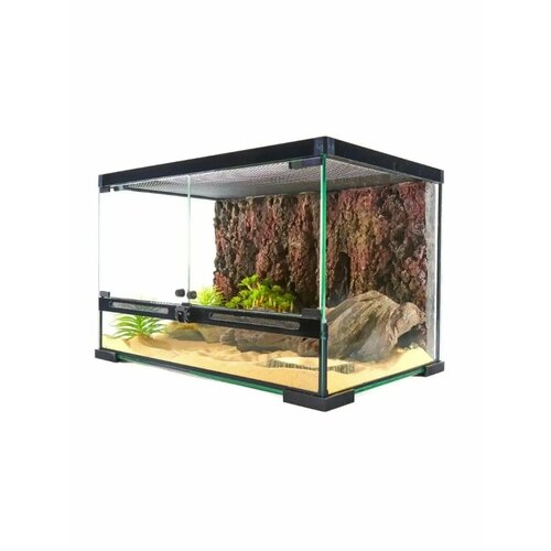 Террариум оснащен передней нижней и верхней вентиляцией для обеспечения свежего воздуха. Высокий борт позволяет насыпать большой слой грунта, что важно для зарывающихся животных.