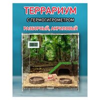 Наш мобильный кубический террариум из оргстекла 25х25х25 см выделяется особо прочным акрилом толщиной 3 мм — в 13 раз прочнее обычного стекла. Благодаря кристально прозрачным стенкам вы сможете наблюдать за питомцем в комфортных условиях. В комплекте уже есть встроенный термогигрометр для точного контроля температуры и влажности, и батарейки для него включены. Бокс для экзотических животных с системой вентиляции и механически фиксируемой съемной крышкой легко собирается без клея и быстро разбирается, что делает его идеальным домом для рептилий, пауков, насекомых и других мелких животных. Продуманная вентиляция с отверстиями 1,5 мм обеспечивает свежий воздух и поддержание оптимального микроклимата. Размеры и характеристики - Внешние размеры: 250х250х250 мм - Внутренние размеры: 236х237х230 мм - Полезный объем: 12,8 литров - Усиленное дно без щелей для поддержания нужной влажности В комплекте — красочный фон (который можно заменить), кокосовый коврик, кормушка, поилка и домик-горка — всё для комфортного содержания. Террариум куб для рептилий и насекомых Идеально подойдет для гекконов, эублефаров, хамелеонов, змей, пауков, богомолов, сухопутных черепах и даже улиток ахатин и виноградных. Также отлично подходит для небольших грызунов (джунгарские хомяки, русские карликовые) и как флорариум для тропических растений. Создайте настоящий живой уголок и идеальный дом для вашего питомца — удобный, практичный и функциональный акриловый террариум, который легко чистить и контролировать.