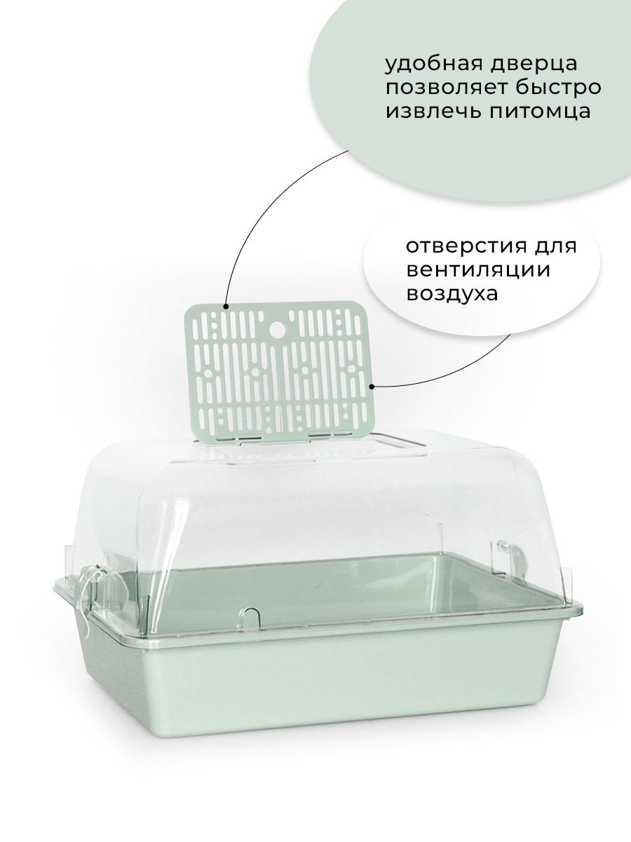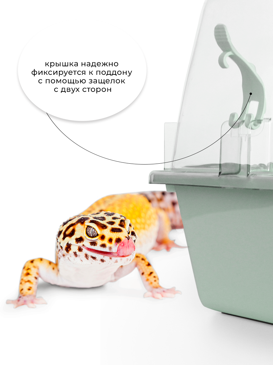 Пластиковый террариум с прозрачной крышкой от российского производителя товаров для животных Zooexpress. Этот пластиковый террариум идеально подходит для улиток ахатин, декоративных грызунов (включая хомяков, мышей, дегу, песчанок), а также земноводных, пресмыкающихся и беспозвоночных. Террариум закрытого типа и имеет разборную конструкцию. Прозрачная крышка, которая надежно фиксируется к поддону при помощи двух защелок, обеспечивает возможность наблюдать за питомцем. К тому же, на крышке имеется дверца, что позволяет быстро извлечь питомца без необходимости полностью снимать крышку. Террариум оборудован вентиляционными отверстиями на дверце, которые обеспечивают хорошую циркуляцию воздуха. Это очень важно для комфортной жизни и здоровья ваших питомцев. Габариты террариума указаны по внешним размерам. Размер дна поддона - 36х25 см. Террариум изготовлен из полипропилена высокой прочности, который не впитывает запахи и безопасен для окружающей среды, животных и человека. В комплект поставки дополнительно входит крепление для поилки. Это удобное и практичное дополнение позволит обеспечить питомца всем необходимым для комфортной жизни прямо внутри террариума.