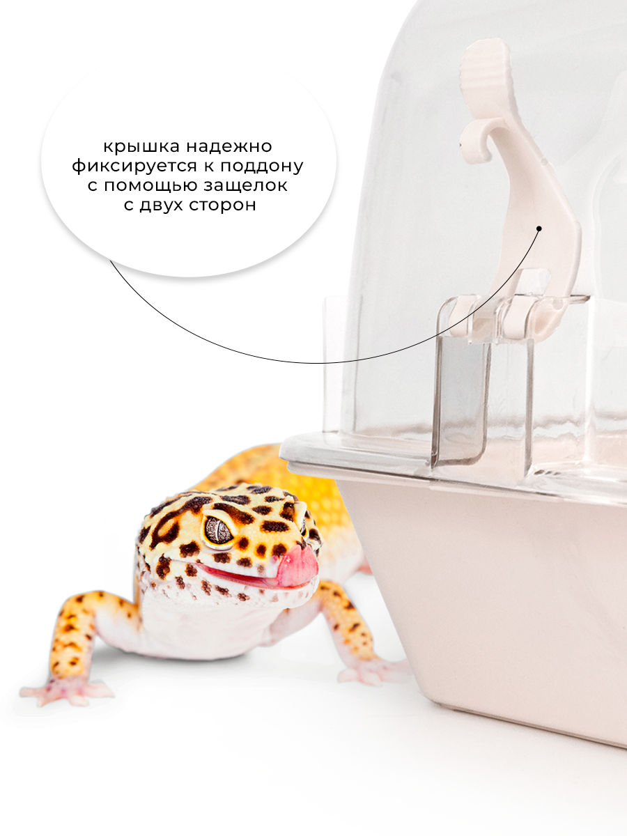 Пластиковый террариум с прозрачной крышкой от российского производителя товаров для животных Zooexpress. Этот пластиковый террариум идеально подходит для улиток ахатин, декоративных грызунов (включая хомяков, мышей, дегу, песчанок), а также земноводных, пресмыкающихся и беспозвоночных. Террариум закрытого типа и имеет разборную конструкцию. Прозрачная крышка, которая надежно фиксируется к поддону при помощи двух защелок, обеспечивает возможность наблюдать за питомцем. К тому же, на крышке имеется дверца, что позволяет быстро извлечь питомца без необходимости полностью снимать крышку. Террариум оборудован вентиляционными отверстиями на дверце, которые обеспечивают хорошую циркуляцию воздуха. Это очень важно для комфортной жизни и здоровья ваших питомцев. Габариты террариума указаны по внешним размерам. Размер дна поддона - 33х20,5 см. Террариум изготовлен из полипропилена высокой прочности, который не впитывает запахи и безопасен для окружающей среды, животных и человека. В комплект поставки дополнительно входит крепление для поилки. Это удобное и практичное дополнение позволит обеспечить питомца всем необходимым для комфортной жизни прямо внутри террариума.