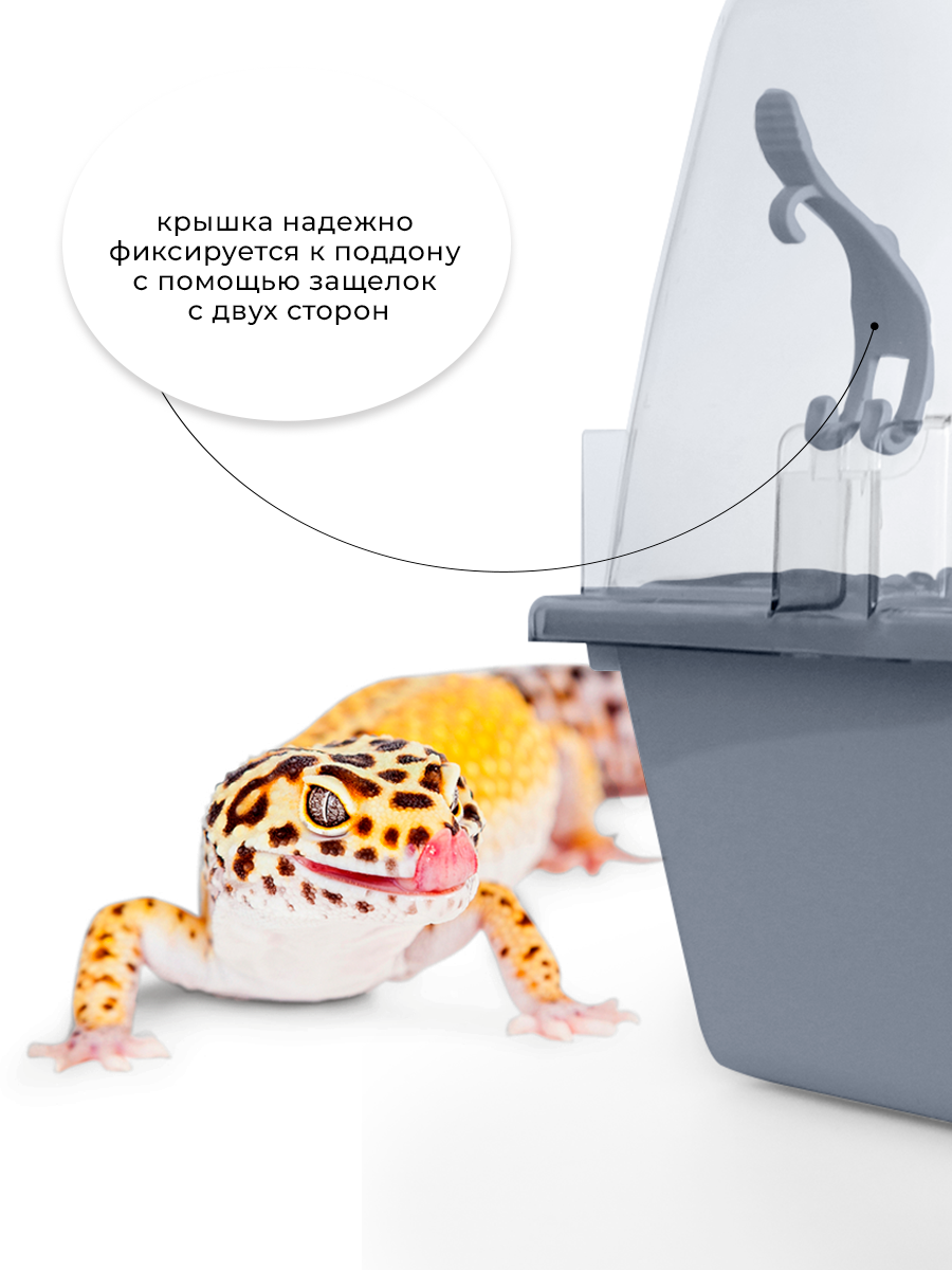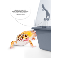 Пластиковый террариум с прозрачной крышкой от российского производителя товаров для животных Zooexpress. Этот пластиковый террариум идеально подходит для улиток ахатин, декоративных грызунов (включая хомяков, мышей, дегу, песчанок), а также земноводных, пресмыкающихся и беспозвоночных. Террариум закрытого типа и имеет разборную конструкцию. Прозрачная крышка, которая надежно фиксируется к поддону при помощи двух защелок, обеспечивает возможность наблюдать за питомцем. К тому же, на крышке имеется дверца, что позволяет быстро извлечь питомца без необходимости полностью снимать крышку. Террариум оборудован вентиляционными отверстиями на дверце, которые обеспечивают хорошую циркуляцию воздуха. Это очень важно для комфортной жизни и здоровья ваших питомцев. Габариты террариума указаны по внешним размерам. Размер дна поддона - 36х25 см. Террариум изготовлен из полипропилена высокой прочности, который не впитывает запахи и безопасен для окружающей среды, животных и человека. В комплект поставки дополнительно входит крепление для поилки. Это удобное и практичное дополнение позволит обеспечить питомца всем необходимым для комфортной жизни прямо внутри террариума.