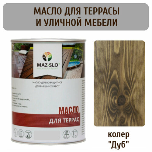 Купить Террасное масло для дерева Maz-slo для уличной мебели, цвет «Дуб», 1 литр, УФ-защита, морозостойкое, влагостойкое с доставкой по всей России.
