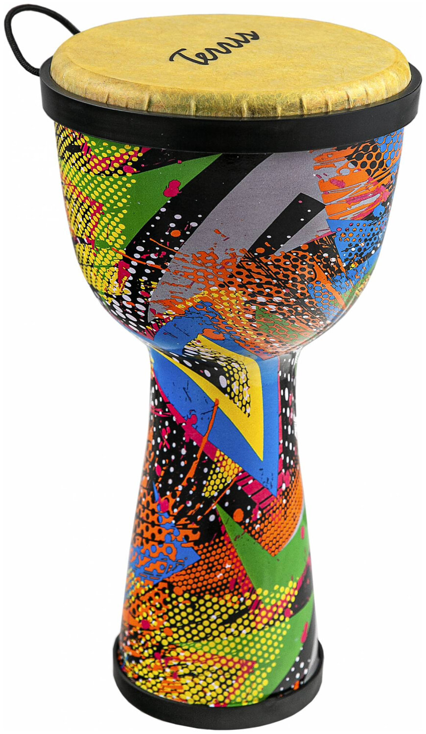 TERRIS DPC-08 URBAN Africa - Джембе размера 08" х 16" из пластика с синтетической мембраной выполненный в стиле современного африканского городского искусства. Забудьте про жирафов, зебр и деревянные маски. Африка модернизируется с головокружительной скоростью. Мегаполисы, технологии и инновации, быстрые деньги и амбициозные новые проекты. Сильный побеждает, слабый проигрывает. Все те же джунгли, но городские. Молодые африканские художники не боятся бросать вызов условностям и живут на полную катушку. Современность и традиции живут бок о бок и постоянно сталкиваются, все это и создает новый, удивительно яркий и самобытный стиль Urban Africa, который нашел воплощение в новом джембе TERRIS DPC-10 URBAN Africa.