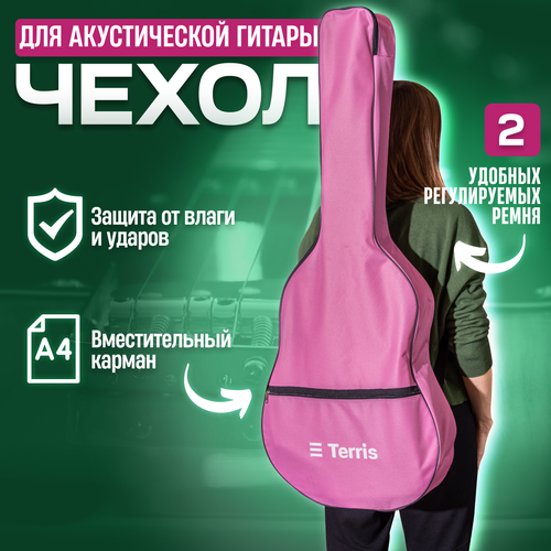 Чехол для акустической гитары TERRIS TGB-A-01 PNK изготовлен из плотной синтетической ткани. Специальная конструкция этой ткани обеспечивает прочность, износостойкость изделию и придает ему водоотталкивающее свойство.