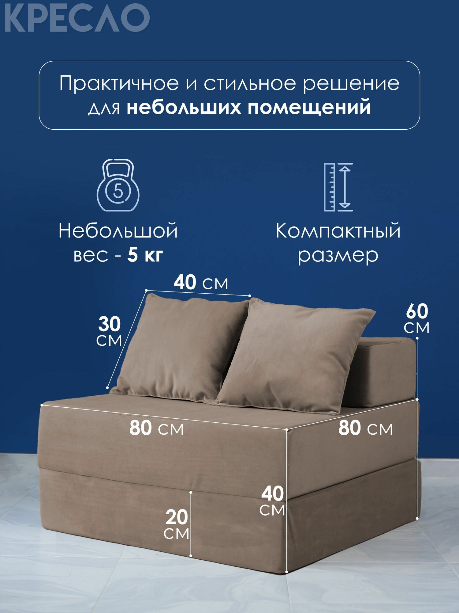 Территория сна Бескаркасное кресло кровать 80х80х60 см: сравнение цен, характеристики, фото, актуальное наличие и цены.