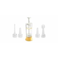 Миксер и кондитерский шприц Tescoma Delicia отлично подходит для приготовления домашних взбитых сливок и украшения прямо из миксера: готовые взбитые сливки не нужно перекладывать в кондитерский мешок. Снабжен силиконовой прокладкой — во время взбивания и украшения взбитые сливки не вытекают. Миксер-шприц идет в комплекте с тремя декоративными насадками и наполняющей насадкой, практичная подставка с противоскользящей обработкой. Высота миксера — шприца — 24 см, диаметр — 9 см. Изделие изготовлено из первоклассного прочного пластика и нержавеющей стали, можно мыть в посудомоечной машине.