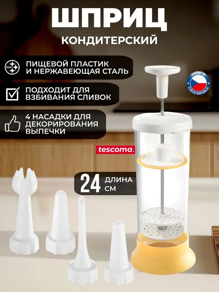 Купить Шприц кондитерский-миксер для взбивания сливокTescoma DELICIA с доставкой по всей России. Шприц кондитерский-миксер для взбивания сливокTescoma DELICIA: сравнение цен, характеристики, фото, актуальное наличие и цены.