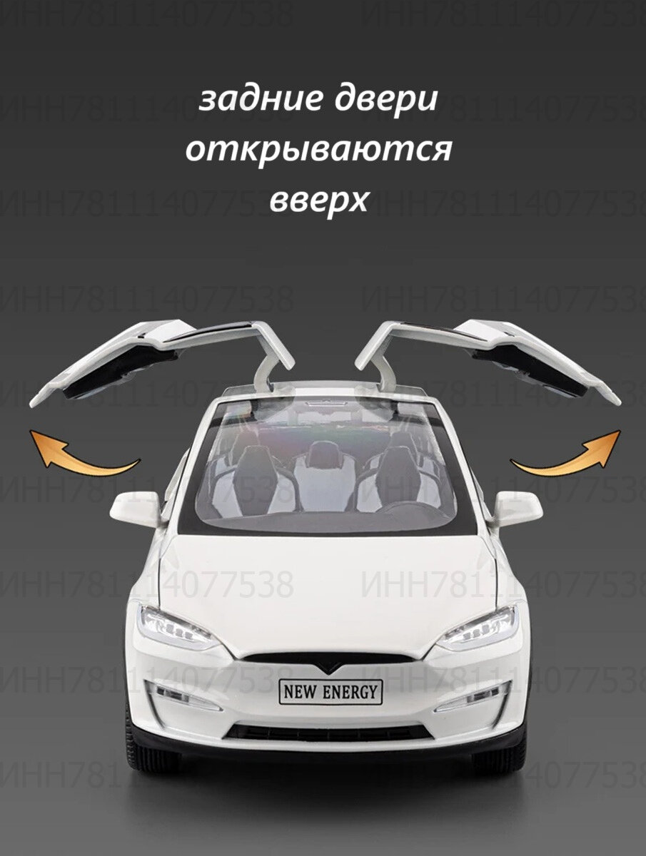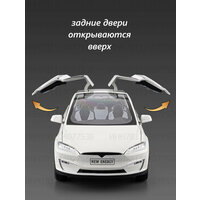 Купить Tesla Model X Тесла 21 см машинка металлическая, открываются двери, капот и багажник, со светом и звуком, поворачиваются колеса, белая с доставкой по всей России.