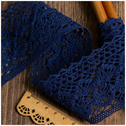 Тесьма вязаная KRUZHEVO 50мм TBY-6368 кружево хлопок цв.29 т. синий уп.10м