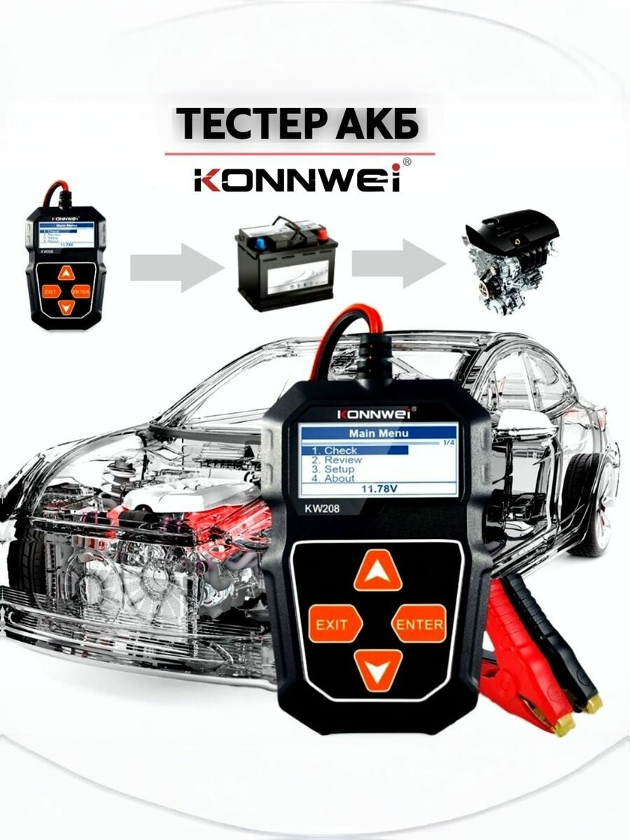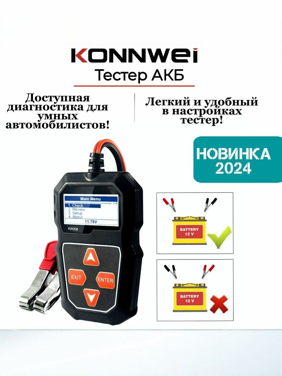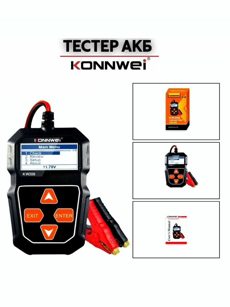 Тестер аккумуляторных батарей АКБ Konnwei KW208 для всех автомобилей, версия 2025 года: сравнение цен, характеристики, фото, актуальное наличие и цены.