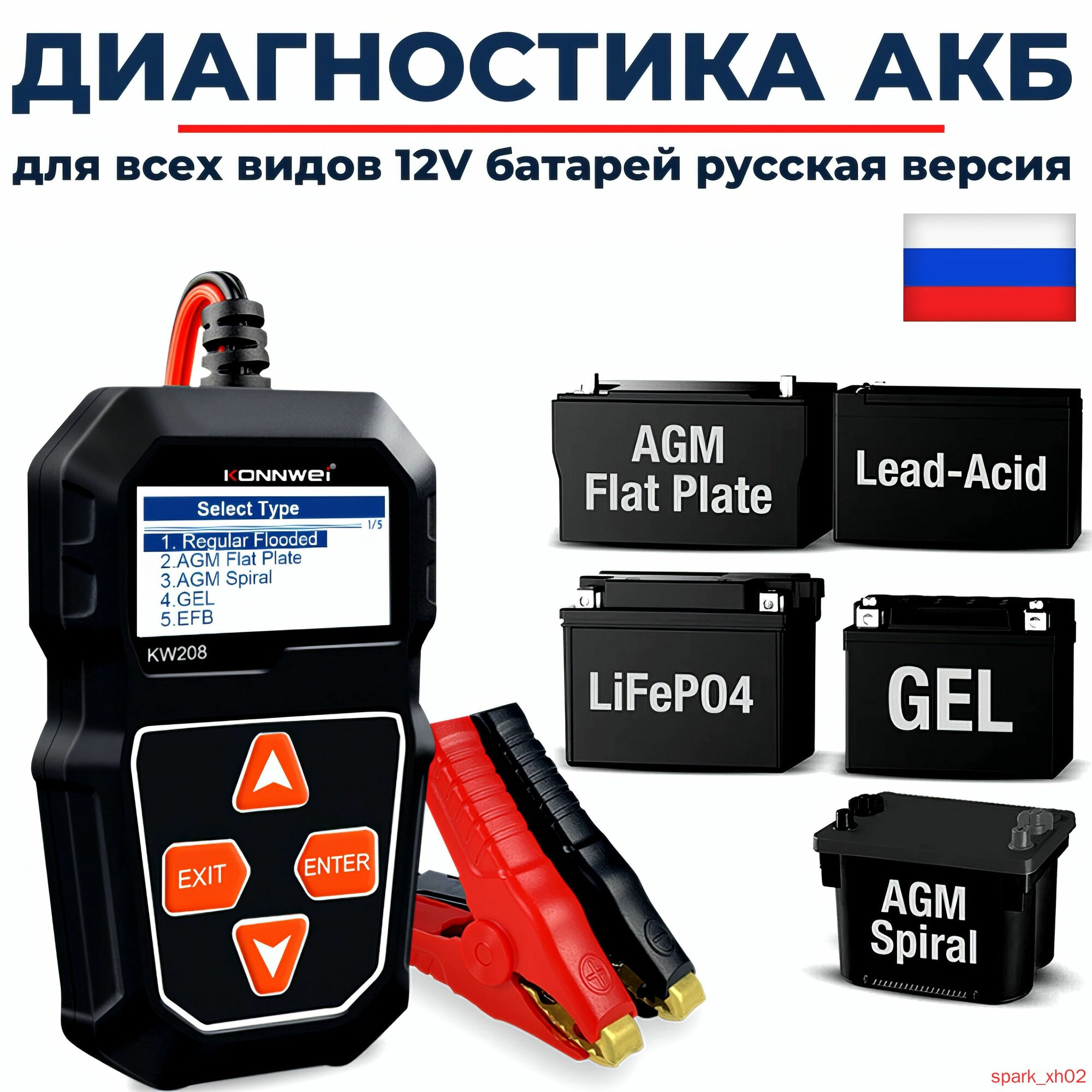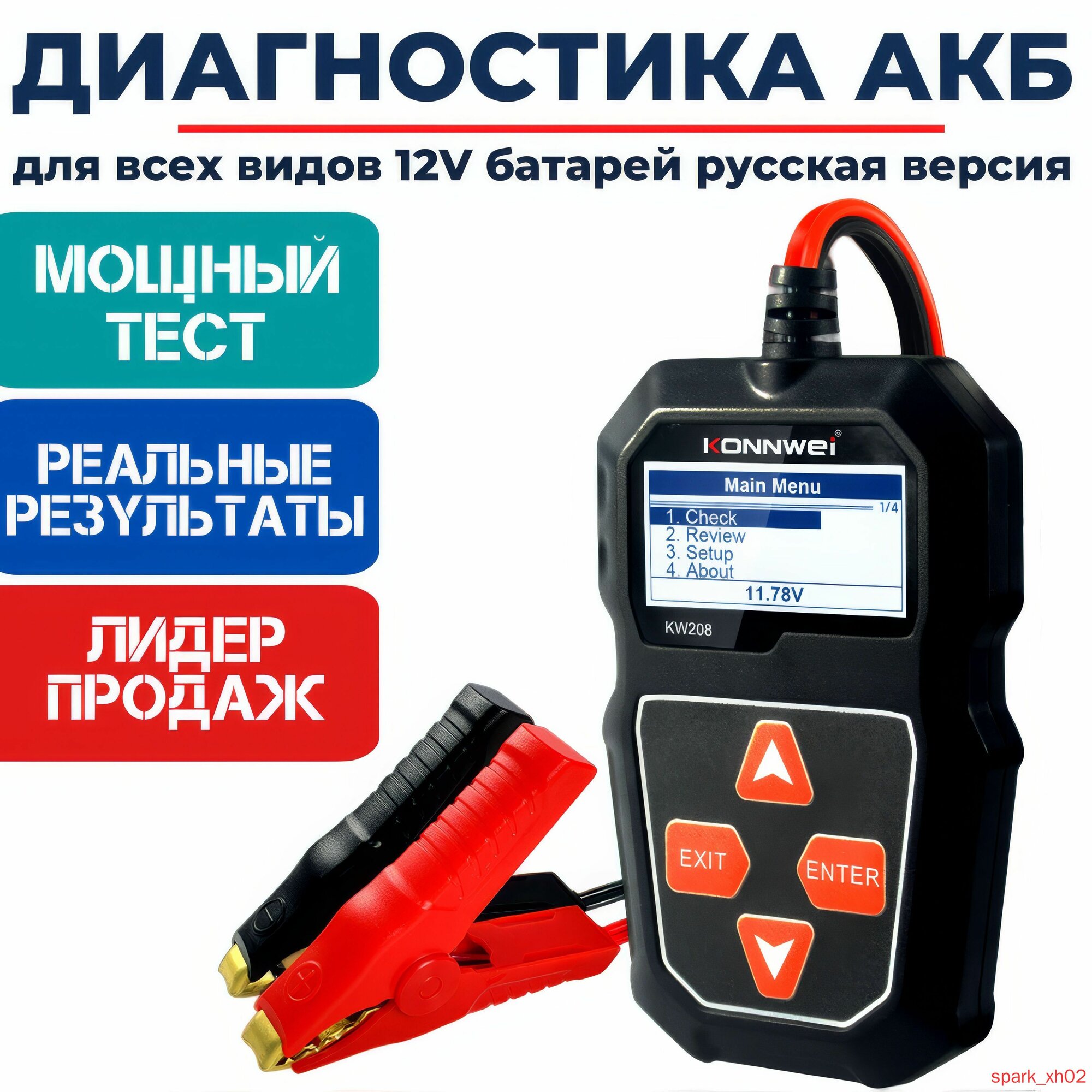 Купить Тестер аккумуляторных батарей АКБ Konnwei KW208 для всех автомобилей, версия 2025 года с доставкой по всей России.