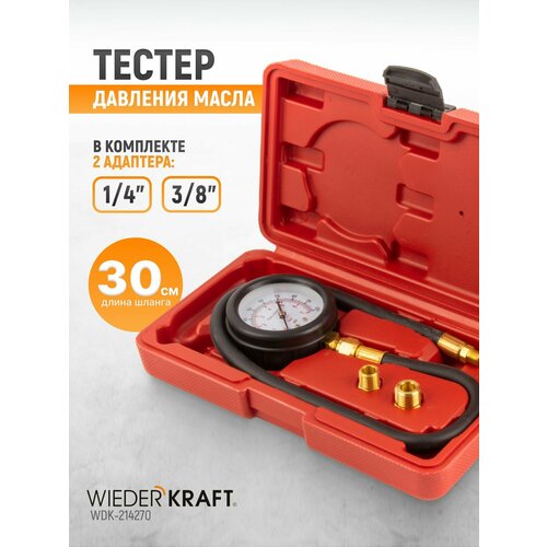 Тестер давления масла WiederKraft WDK-214270 — это диагностический инструмент для проверки системы смазки двигателя, позволяющий измерять давление масла в диапазоне от 0 до 7 бар. Диагностика неисправностей в системе подачи масла двигателя (определение износа масляного насоса, засорения маслопроводов, проблем с датчиками давления масла и т. д.). Подходит как для легковых, так и для грузовых автомобилей, благодаря широкому рабочему диапазону и комплектации адаптерами. Удобный пластиковый кейс обеспечивает компактное хранение и защиту всех компонентов набора.