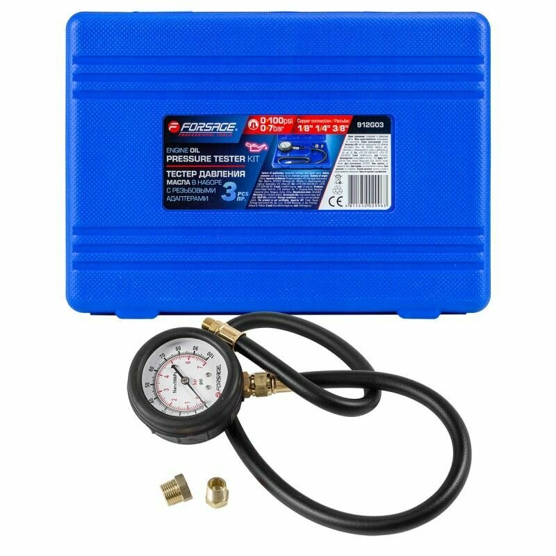 Тестер давления масла в наборе с резьбовыми адаптерами 3пр, (0-7bar), в кейсе Forsage: сравнение цен, характеристики, фото, актуальное наличие и цены.