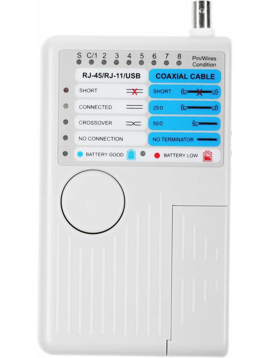| Дополнительная информация | поддерживает разъемы RJ-45/11, BNC, USB; чехол и элемент питания в комплекте |