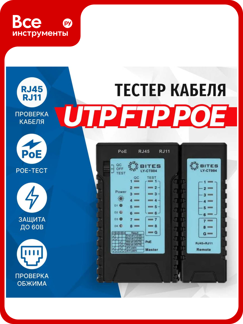 Тестер кабеля 5Bites UTP, STP, TEL, POE, PLUG TEST LY-CT004: сравнение цен, характеристики, фото, актуальное наличие и цены.