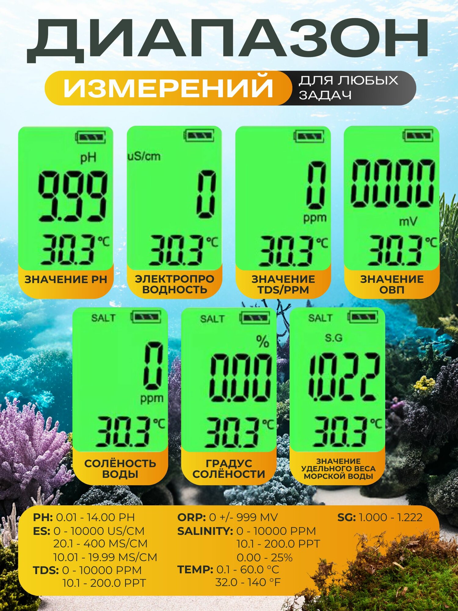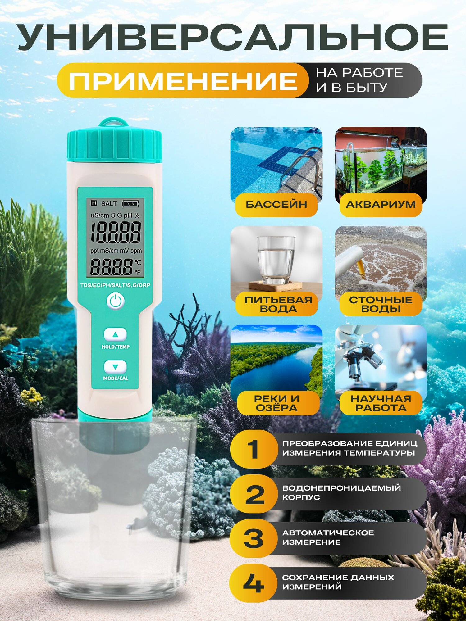 Купить Тестер качества воды 7 В 1 / Компактный цифровой измеритель качественных параметров воды: ОВП, PH, TDS — метр, солемер, термометр. -G с доставкой по всей России. Тестер качества воды 7 В 1 / Компактный цифровой измеритель качественных параметров воды: ОВП, PH, TDS — метр, солемер, термометр. -G: сравнение цен, характеристики, фото, актуальное наличие и цены.