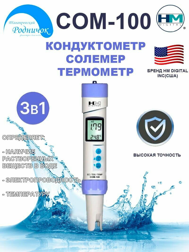 Тестер качества воды HM Digital COM-100 Кондуктометр, солемер, термометр, 3в1(TDS/EC/TEMP-метр): сравнение цен, характеристики, фото, актуальное наличие и цены.
