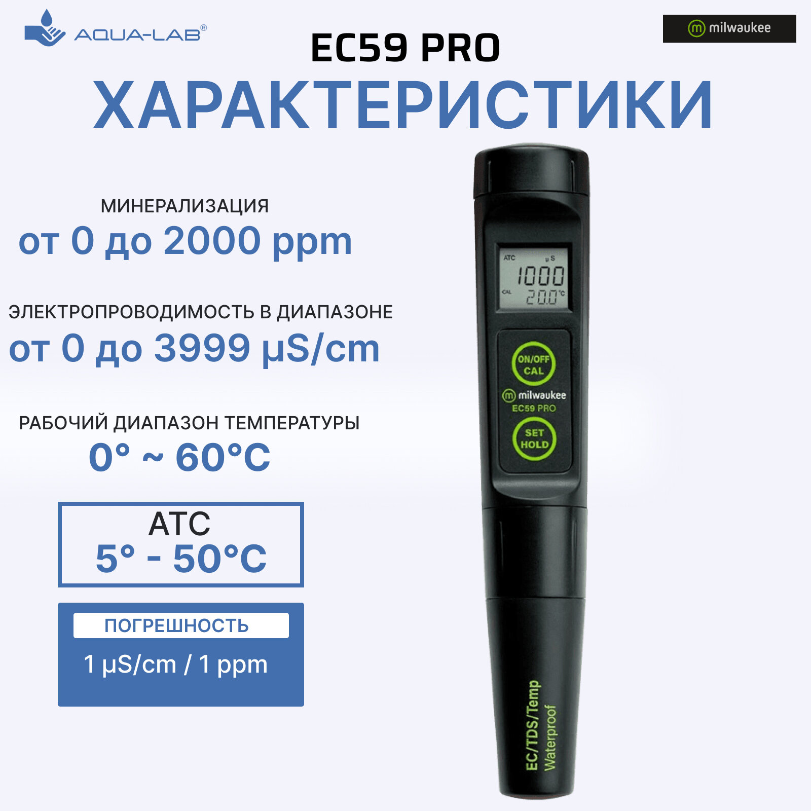 Тестер качества воды термометр с автоматической калибровкой Milwaukee EC59 PRO: сравнение цен, характеристики, фото, актуальное наличие и цены.