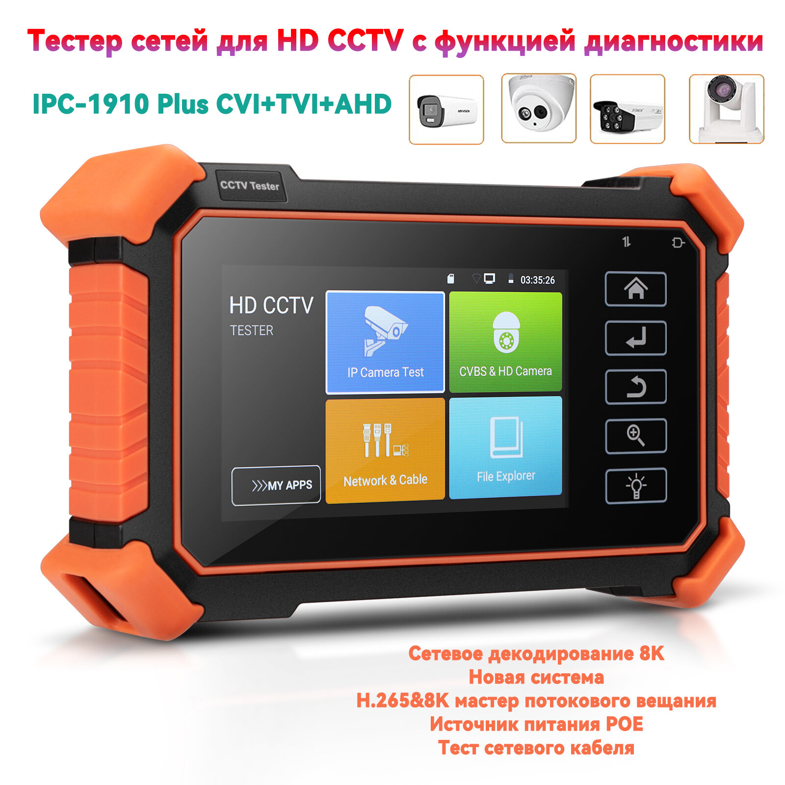 Тестер камер видеонаблюдения IPC-1910 Plus,8MP AHD CVI TVI CVBS IP тестера камеры,4K 30FPS VGA HDMI Вход,4 дюйма: сравнение цен, характеристики, фото, актуальное наличие и цены.