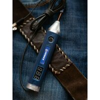 Контролька автомобильная URMAX 12/24V AVM Volt M - это электронное устройство, предназначенное для специалистов в области автоэлектрики. Оно представляет собой разборный корпус с контактом в виде иглы и проводом с зажимом «крокодил». На лицевой панели расположен вольтметр и кнопка управления, а также зуммер для звукового оповещения прозвонки.