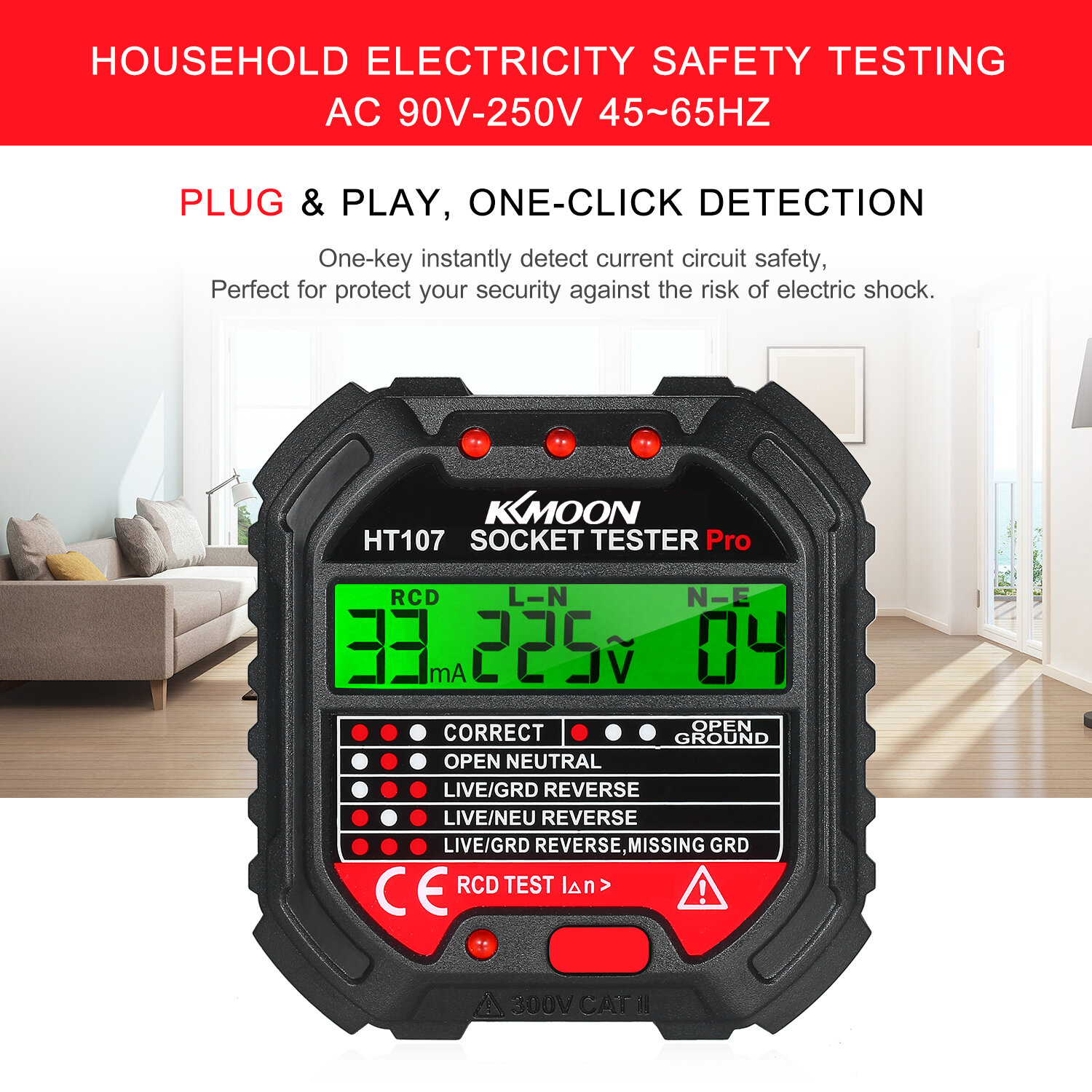 Купить Тестер розеток KKmoon GFCI с дисплеем напряжения Тестер розеток 90-250 В Автоматический с доставкой по всей России.