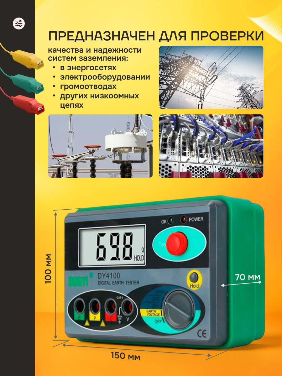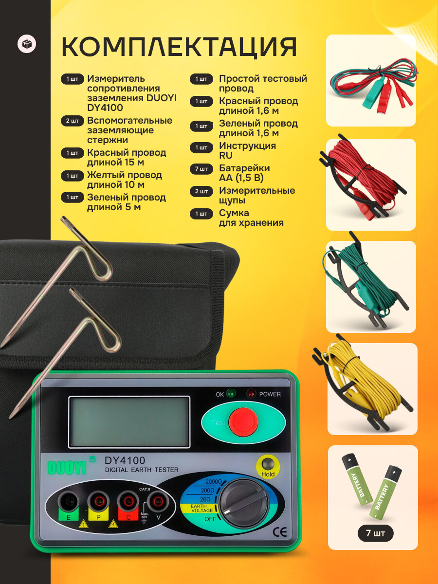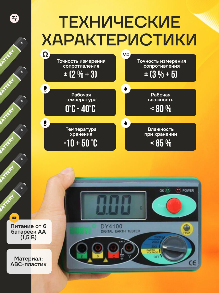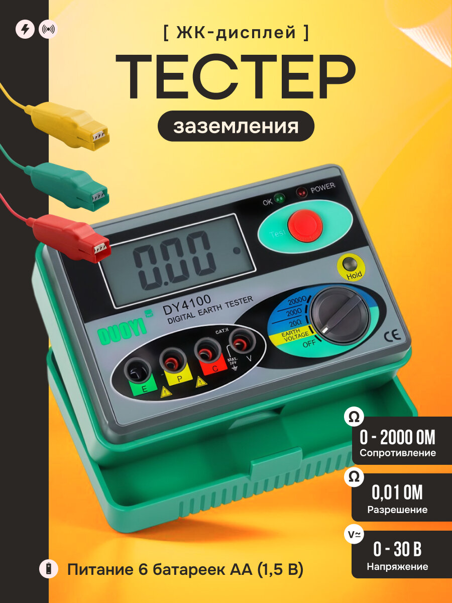 Тестер заземления DUOYI DY4100, цифровой, подсветка дисплея, питание от АА, набор, 1 шт: сравнение цен, характеристики, фото, актуальное наличие и цены.