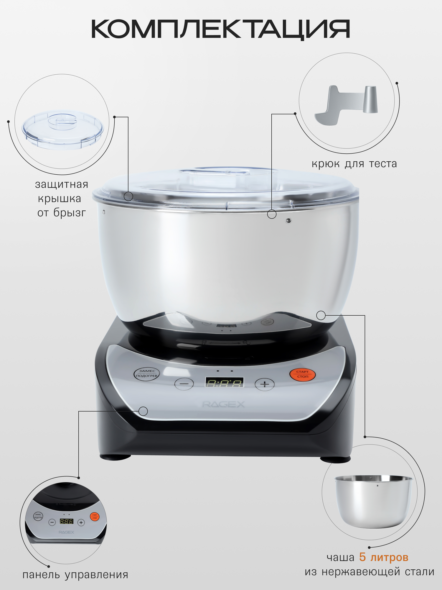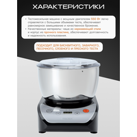 Тестомесильная машина 5 литров, 550 Вт, черный