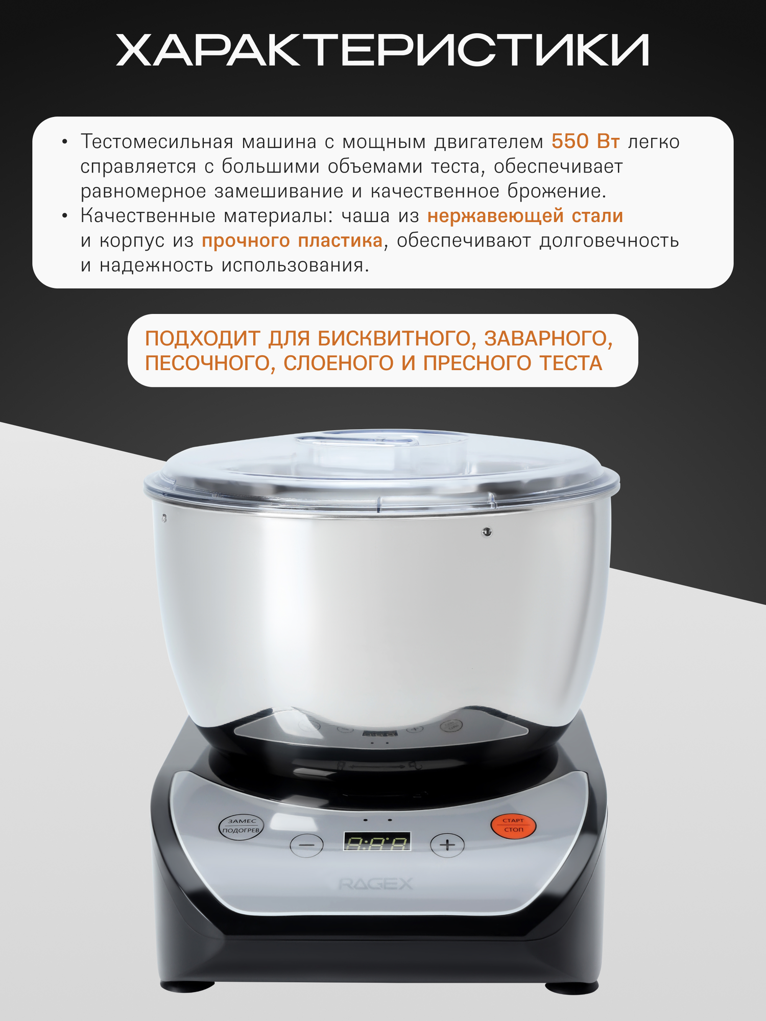 Тестомесильная машина RAGEX R2001-000 - это профессиональное оборудование, предназначенное для изготовления мучных и кондитерских изделий.