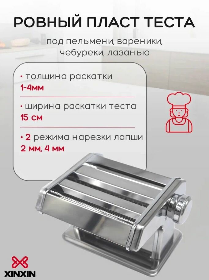 | Подробная комплектация | 1. Лапшерезка-тестораскатка со встроенными ножами для нарезки лапши 2.5 мм, 4 мм, 9 мм. (поставляется в белом коробе от производителя, устройство защищено от царапин и другого внешнего воздействия пленкой. Перед использованием пленку необходимо снять). 2. Инструкция по эксплуатации на русском языке. 3. Ручка и струбцина A315 |