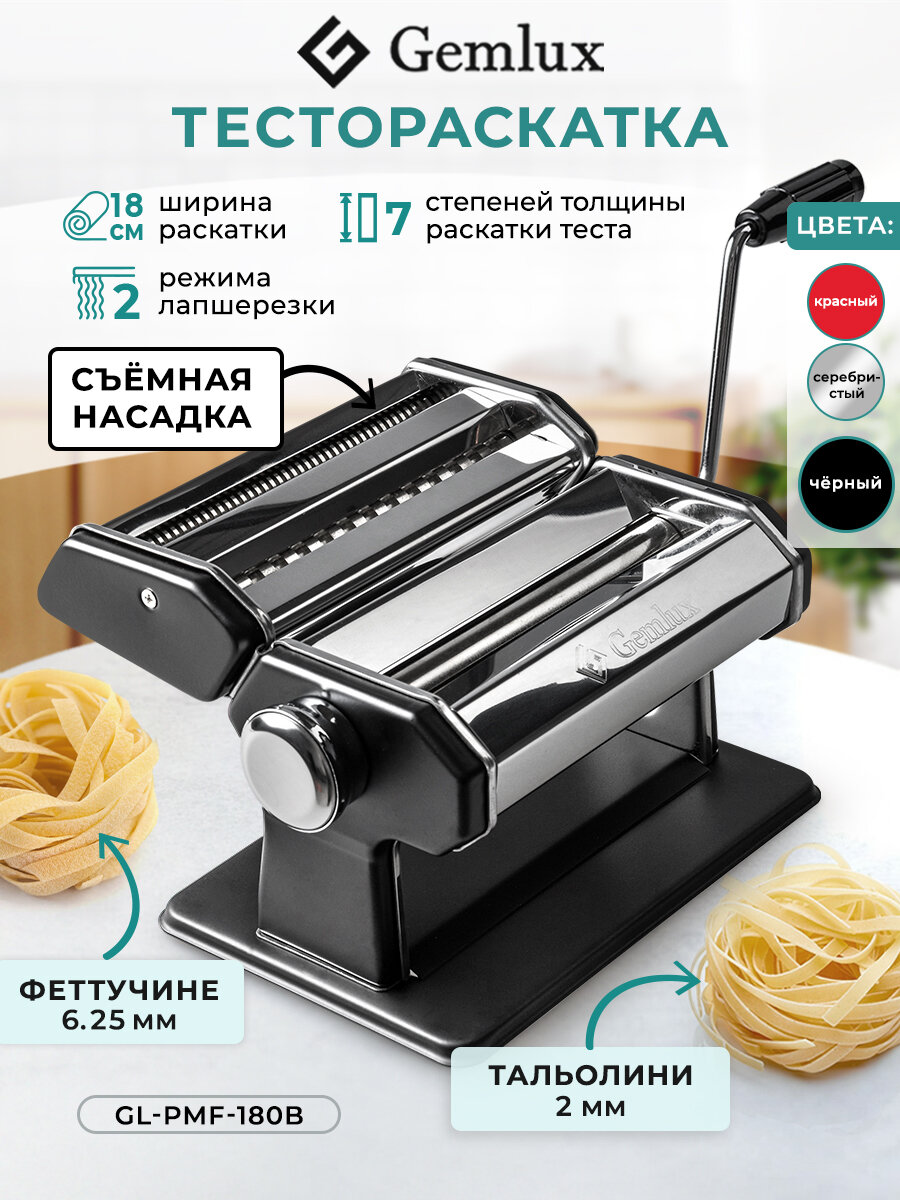 Тестораскатка Gemlux GL-PMF-180, ручная, металл, 1 пара валков, 7 положений, 18x15x23 см: сравнение цен, характеристики, фото, актуальное наличие и цены.
