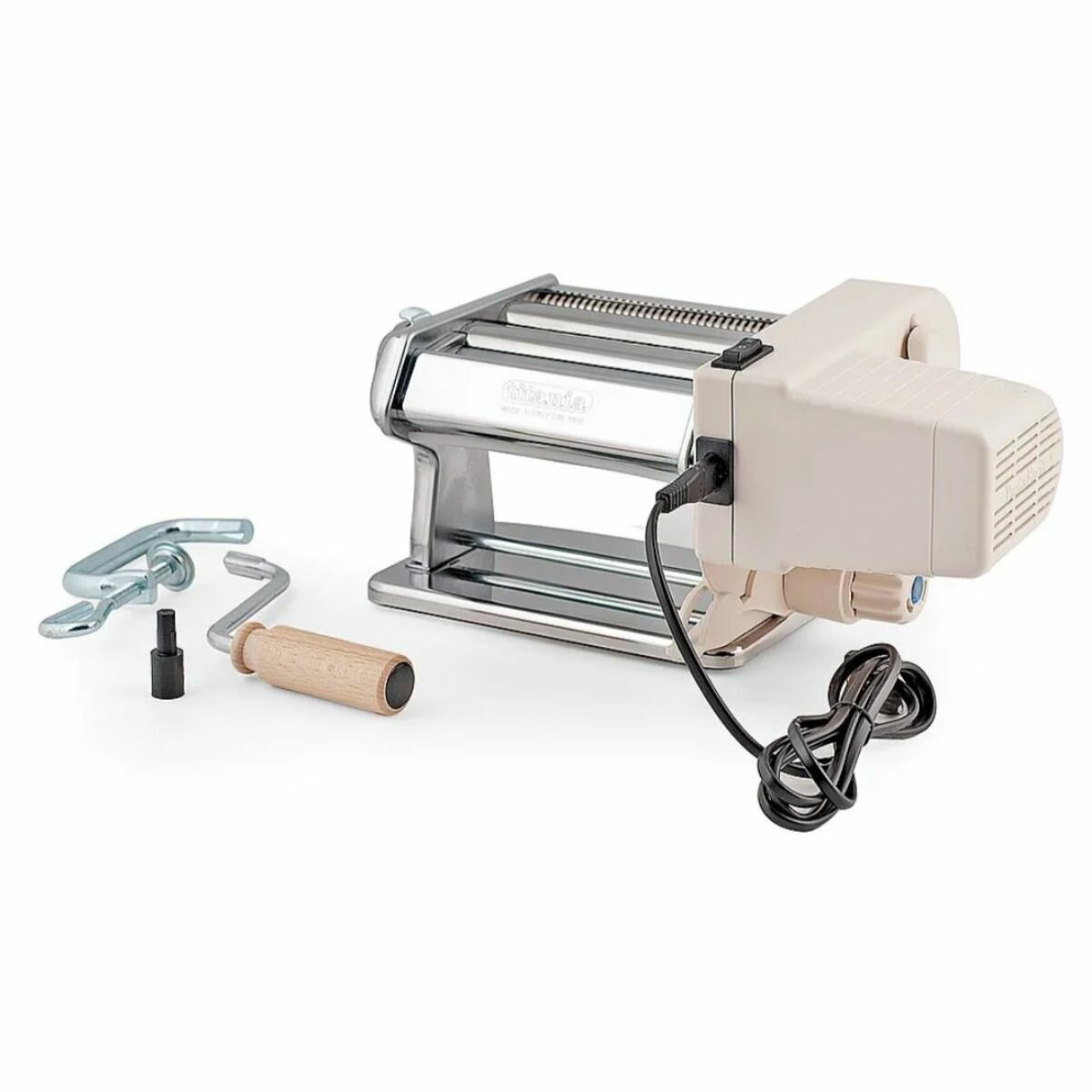 Тестораскатка лапшерезка со съемным электроприводом IMPERIA PASTA FACILE 600 - настольная машина для раскатки крутого теста и нарезания пасты, лапши. Аппарат для раскатки теста поможет приготовить вкуснейшую пасту тальятелле 2 мм, феттучине 6,5 мм по итальянским традициям и раскатать пласт теста шириной 140 мм под равиоли, пельмени, лазанью, вареники, чебуреки.