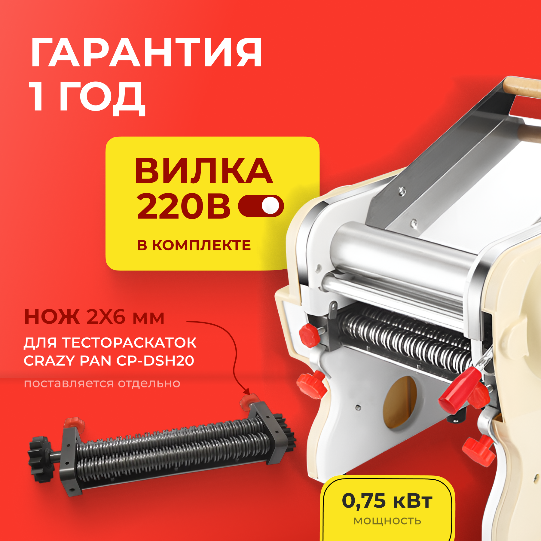 Тестораскаточная машина Crazy Pan CP-DSH22L, пластик, раскатка теста до 220 мм, без ножа, 0,75кВт, 220В, вилка, 19 кг: сравнение цен, характеристики, фото, актуальное наличие и цены.