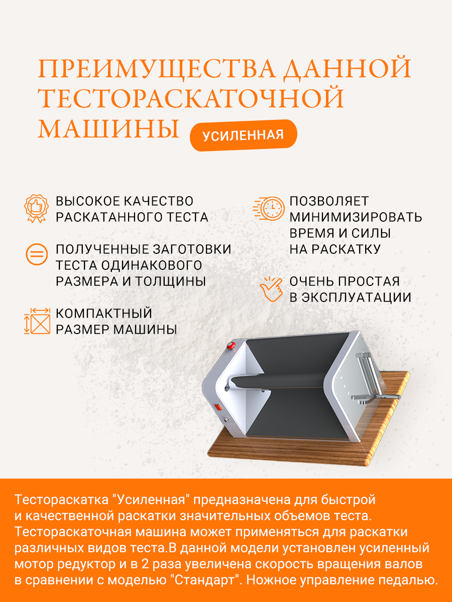 | Подробная комплектация | Тестораскаточная машина , подающий лоток, ручка регулировки, кабель питания, педаль ножная, ключ, инструкция, гарантийный талон. |