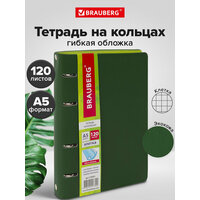 Купить Тетрадь на кольцах А5 (180х220 мм), 120 листов, под кожу, клетка, Brauberg Joy, зелёный/светло-зелёный, 129991 с доставкой по всей России.