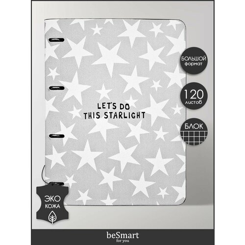 Cвет звёзд издавна считался самым священным и чистым. Нам тоже близка эта философия, ведь сияние звёзд – магическое и завораживающее явление. Оно и натолкнуло нас на создание коллекции "Stars" от Infolio Study. Считай звезды вместе с нашей тетрадью А4 формата (240х310 мм), которая идеально подойдет для больших записей и долго не закончится! Крепление на кольцах позволит тебе не только легко убирать ненужные листы и добавлять новые, но и вставлять дополнительные блоки. Можно даже вести несколько предметов в одной тетради! Жесткая обложка из искусственной кожи с цветной печатью снаружи и плотным черным дизайнерским картоном внутри имеет скругленные уголки, которые позволяют не порвать подкладку сумки. Сменный внутренний блок в клетку с прямыми уголками на 120 листов (240 страниц) из высококачественной белой бумаги плотностью 65г/м2.
