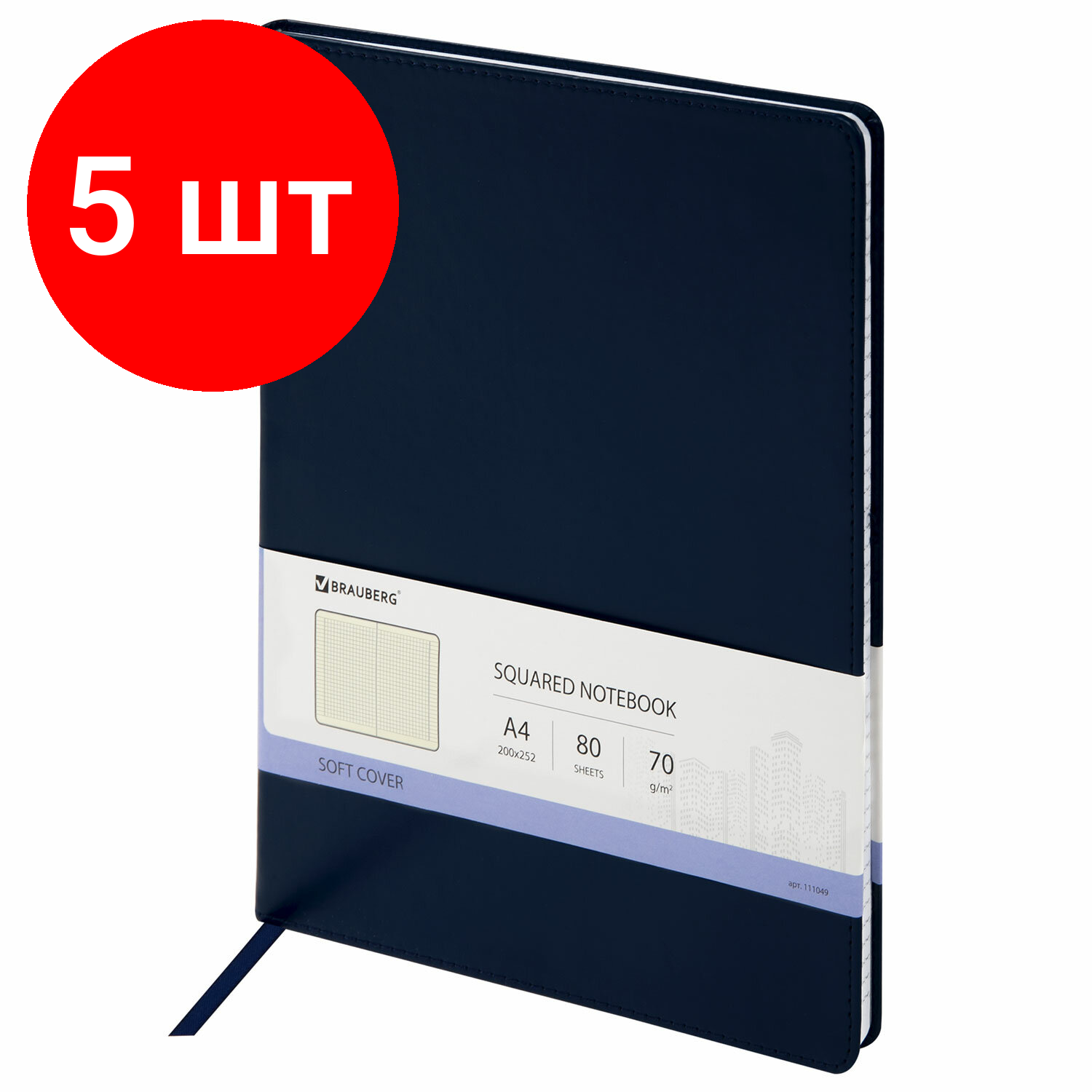 Комплект 5 шт, Тетрадь большой формат (200×252 мм) В5, BRAUBERG «Metropolis Extra», под кожу, клетка, 80 л, синий, 111049: сравнение цен, характеристики, фото, актуальное наличие и цены.